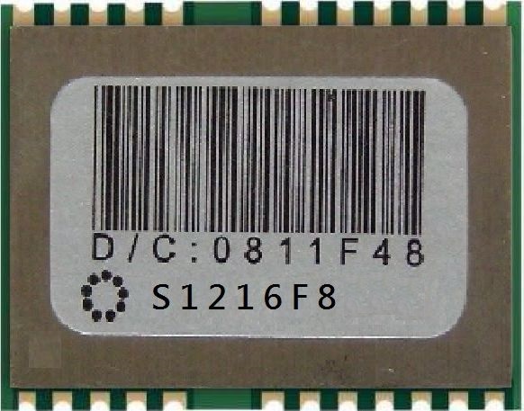 The small S1216F8 GPS receiver module measures 12mm x 16mm, consumes 26mA @ 3.3V during continuous navigation at 50Hz update rate.